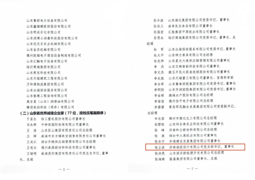 會(huì)議表彰了全省87家誠信企業(yè)、77名優(yōu)秀誠信企業(yè)家、25家誠信建設(shè)示范企業(yè)和15名誠信建設(shè)示范企業(yè)領(lǐng)軍人物。其中,濟(jì)南城投設(shè)計(jì)有限公司被授予“山東省誠信企業(yè)”榮譽(yù)稱號(hào),公司黨支部書記、董事長張立波被授予“山東省優(yōu)秀誠信企業(yè)家”榮譽(yù)稱號(hào)。