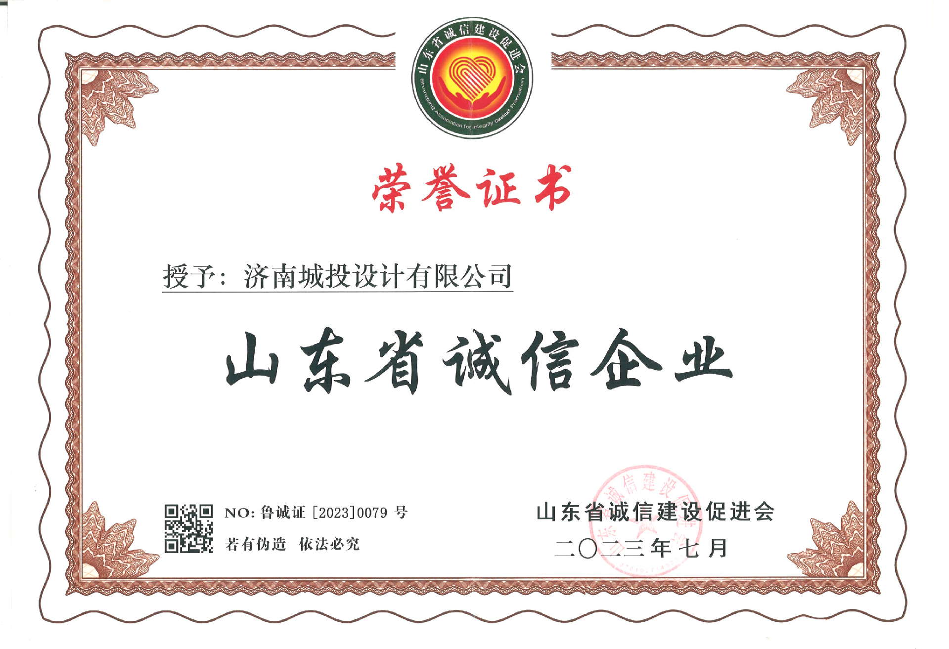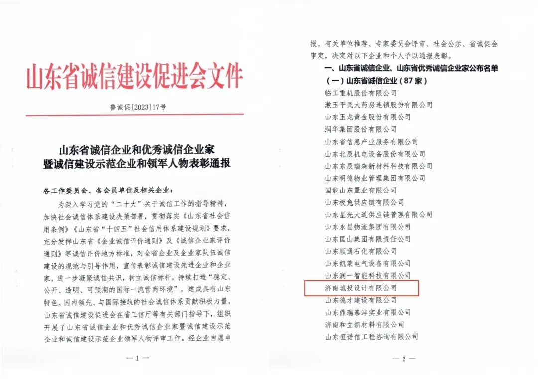 近日,由山東省工業(yè)和信息化廳、山東省市場監(jiān)督管理局指導(dǎo),山東省誠信建設(shè)促進(jìn)會(huì)主辦的“全省企業(yè)誠信建設(shè)工作會(huì)議”暨“山東省誠信企業(yè)、優(yōu)秀誠信企業(yè)家”等授牌儀式在煙臺(tái)成功舉行,濟(jì)南能源工程集團(tuán)所屬濟(jì)南城投設(shè)計(jì)有限公司受邀出席會(huì)議。